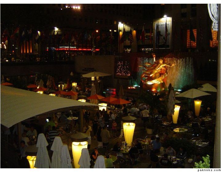 Base of Rockefeller used as open air restaraunt in summer and ice-rink in winter