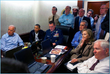 Taking command: President Obama talks with members of the national security team in the White House situation room following the conclusion of the mission