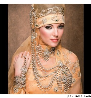 I honestly think it’s a question of perspective. I’m pretty sure most of my arab, somali, and goray friends wondered why I was wearing a brooch on the side of my head because they had no idea what a jhoomar was and probably thought my tikka was a bracelet. WE think jhoomars look nice where we put them because that’s how we are used to them, same goes for tikkas and matha pattis and those things they use to accessorize parandey now, and those big sets they are making for hijabi brides (this one’s from Kyles Collection in B’ham):