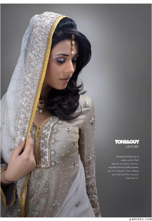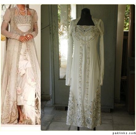 Pictures of white bridal/valima dresses. Base colour should be off white but they can be combined with any other colour