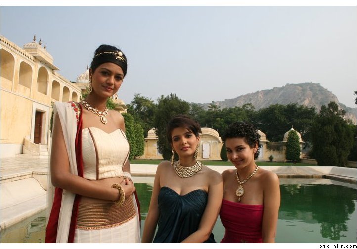 The jewelry travelogue will chronicle traditional Indian jewellery in five different cities (Jaipur-jadau, Hyderabad-pearls, Chennai-temple jewellery, Cochin-gold, Delhi-diamonds). Lisa Ray will wear some seriously opulent jewelry and here are a few glimpses of it.