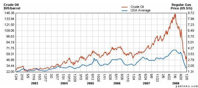 Oil prices hit a peak above $147 a barrel in July but have fallen more than $100 since then as the severity of the global economic downturn has become clear.