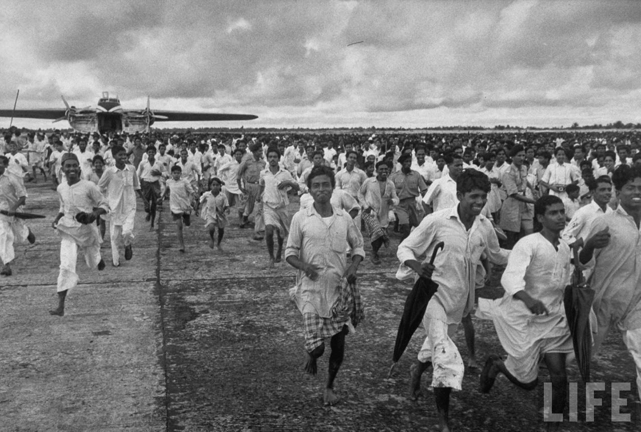 Crowd running across airfield to greet “Ayub Khan” President of Pakistan. (Now Bangladesh), September (1959)