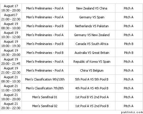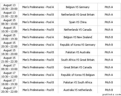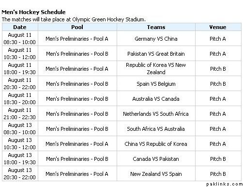 Here is the complete schedule of hockey matches in the Olympics.