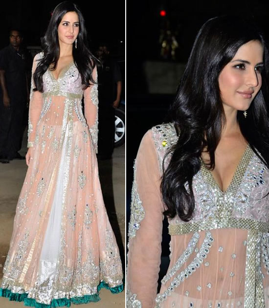 She wore this at the Filmare Awards desidned by Manish Malhotra, isn’t it lovely? I can already imagine a bride wearing this as a lehnga (minus the cleavage)! It’s soo beautiful, and of course looks amazing on miss Katrina Kaif! What do you guys think? Isn’t it gorgeous?