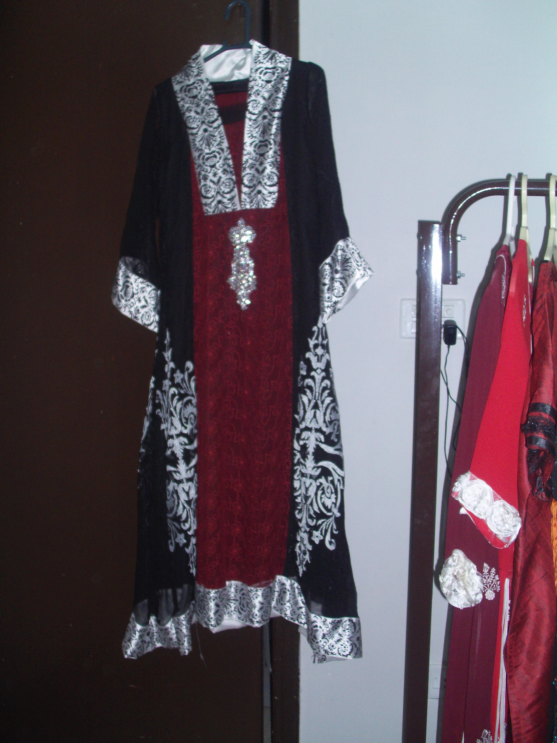 The black and maroon (chiffon cum net) outfit is for 175$.