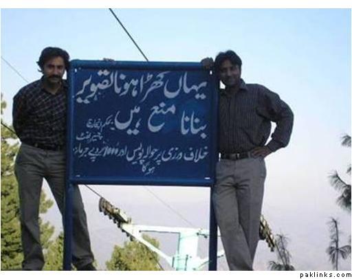 The sign says… No pictures allowed here, violators will be handed over to police and fined Rs. 1000 PKR