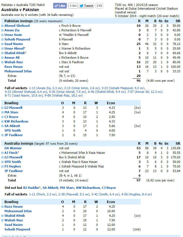 Re: Only T20I: Pakistan v Australia at Dubai (DSC), Oct 5, 2014
