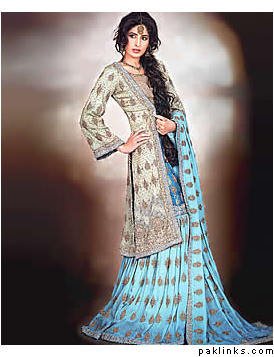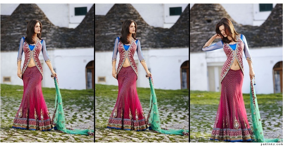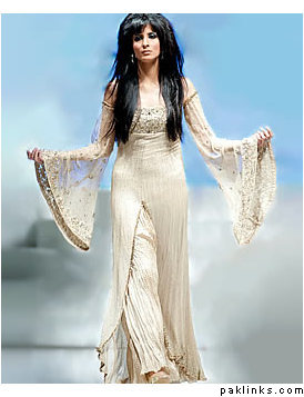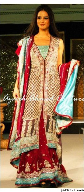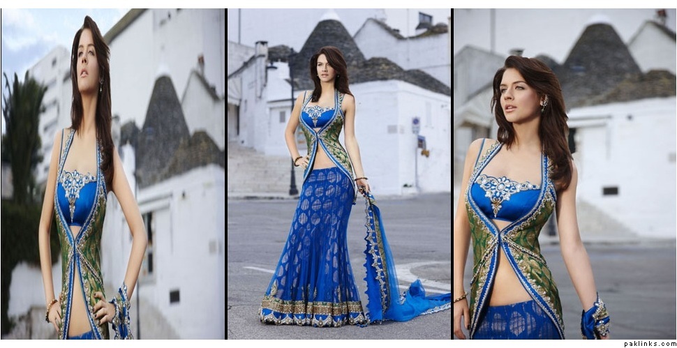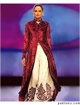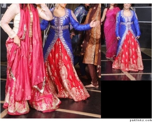 I remember when open front shirts in salwar kameez were totally in like 10 years ago, i remember the fashion started after the movie: har dil jo pyar karega, remember the song "piya piya" were preity and rani were wearing it?? After that movie, everyone started wearing those open front net kameez's, and lehnga's were made like that too...I guess this fashion is back again