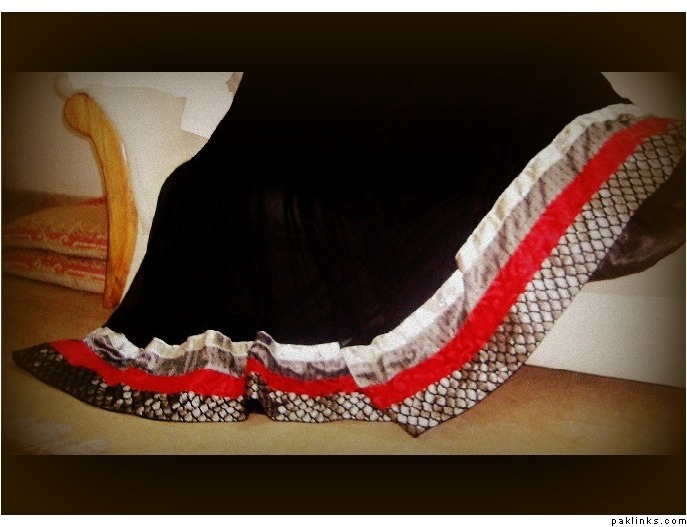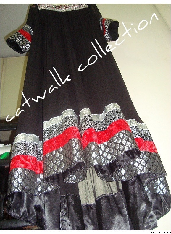 3piece in black color ...flowy partywear dress back long dress:front and back neckline work