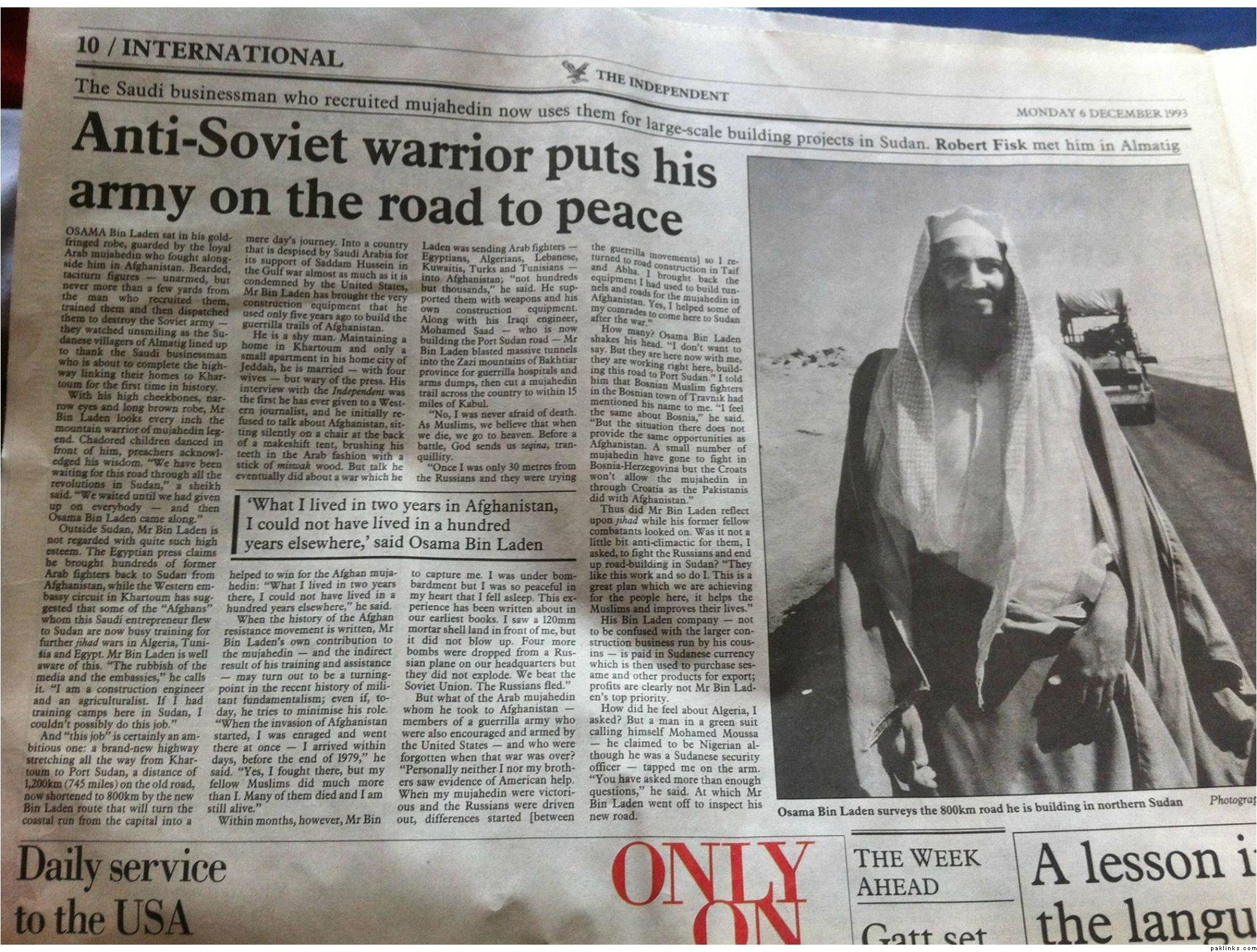 Re: Osama bin Ladin builds roads in Sudan!!