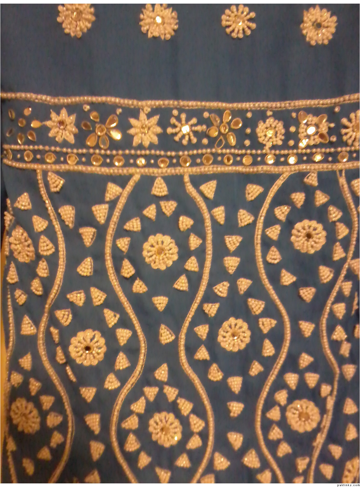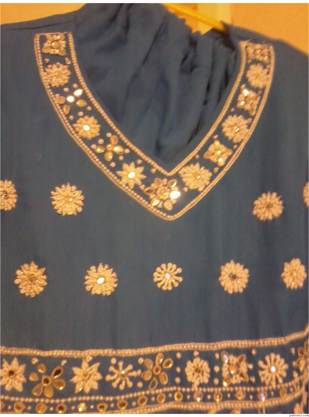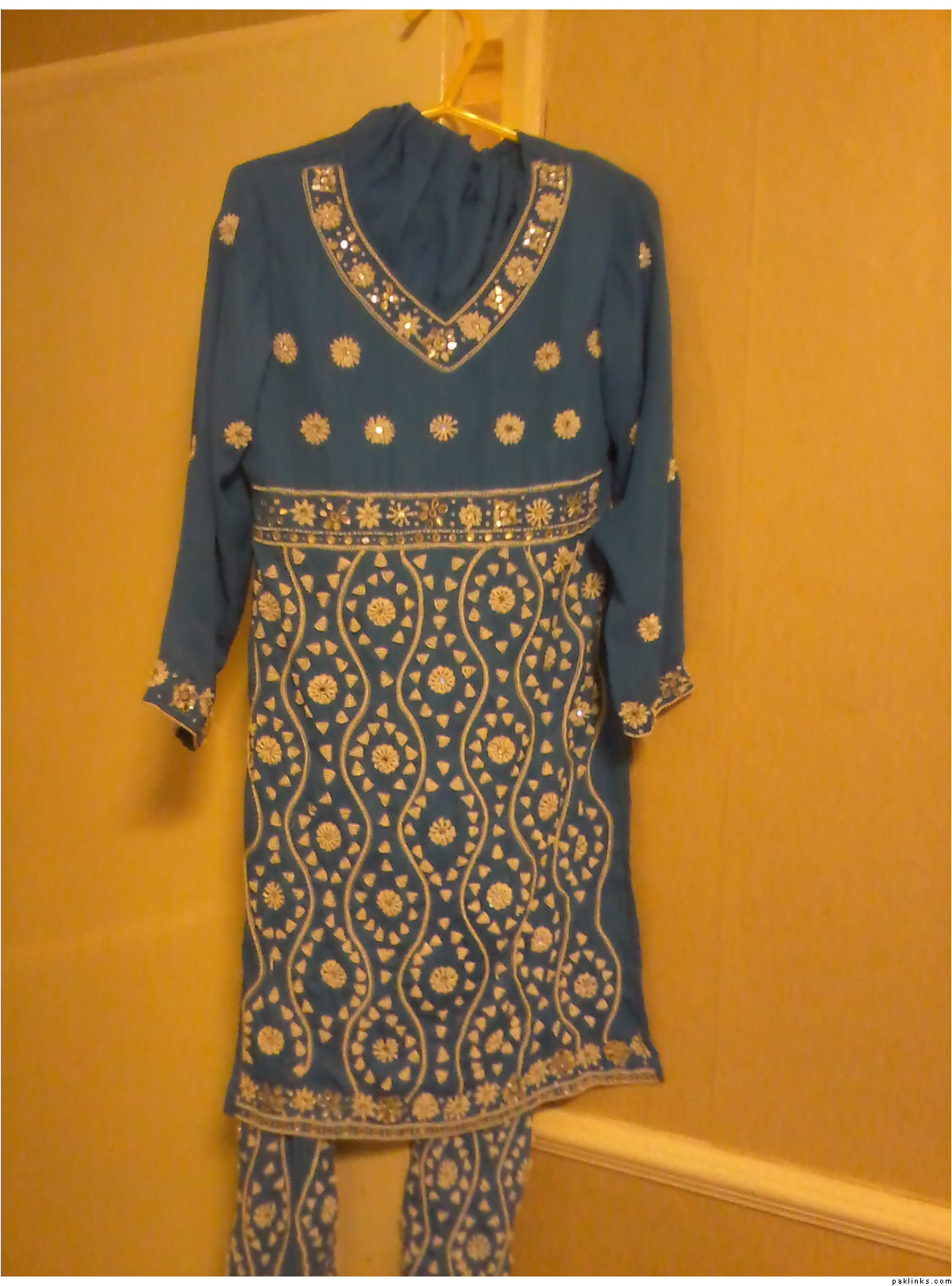 Here for sale I have a gorgeous outfit for sale(size small). It is a copy of an outfit by Sana designer wear retailing at around £175. It has only been once for a few hours at a wedding and is a real head turner. In blue with embroidery and pearl work,full kameez and heavy churidaar too. I have attached a pic of the original so you can see for yourselves. Please excuse the bad lighting from the phone.If anyones interested I am willing to sell it for £45 or a near offer so do let me know please.