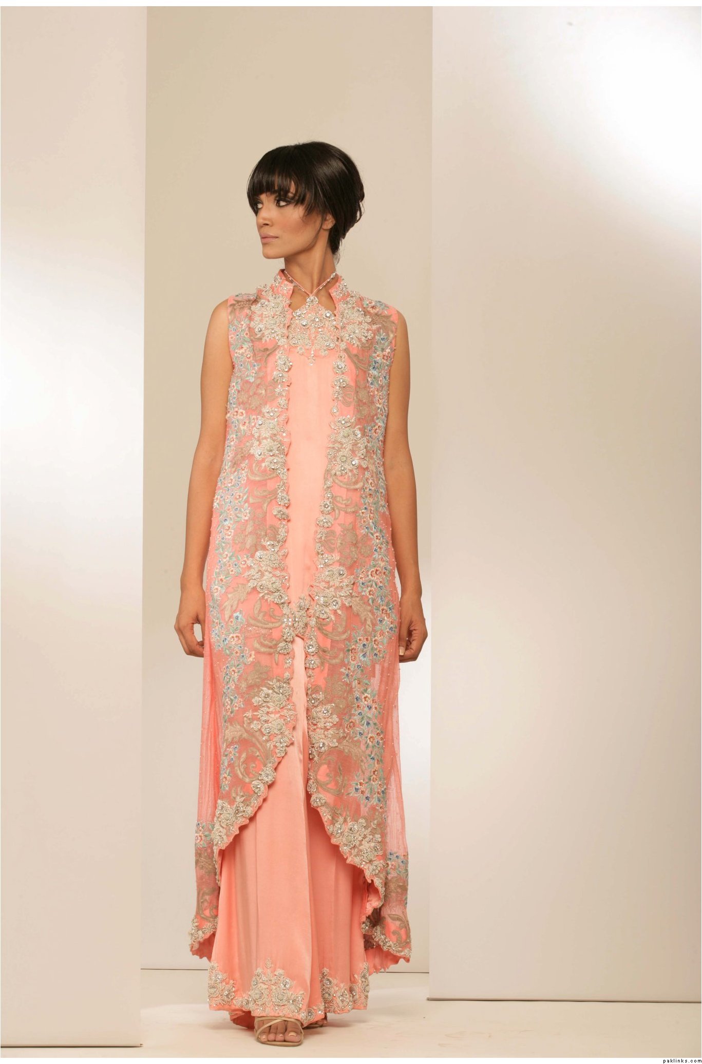 I’am contemplating getting something of this sort cut-wise &without heavy kaam made for Eid, would it look good in real life-(I’m 5’6 and slim). Also any idea about the fabrics used, is it satin bcoz it does seem like it. And how does one wear a dupatta with this(my mum will never let me go about dupatta-less). Any more pics of these kind of outfits?