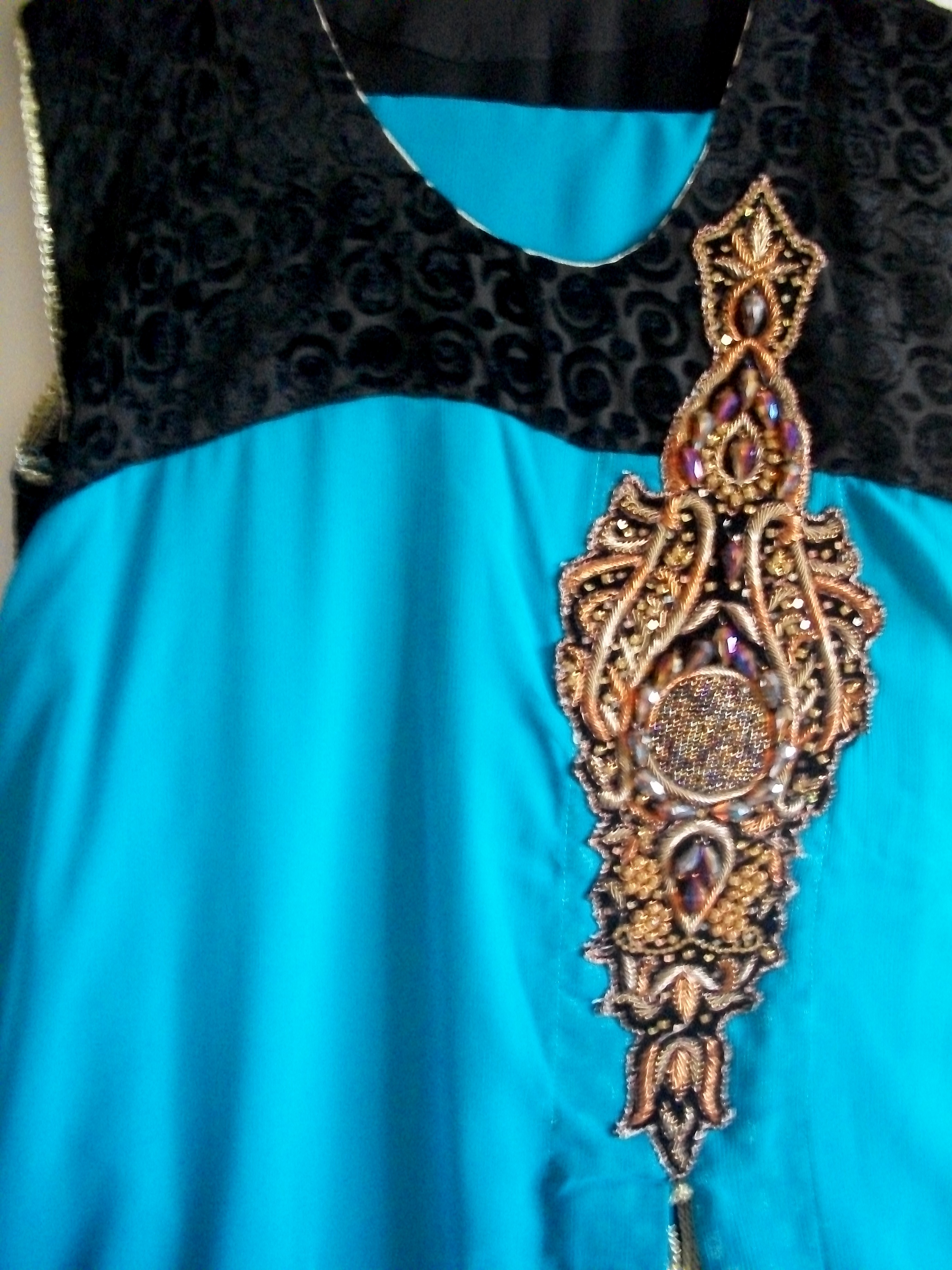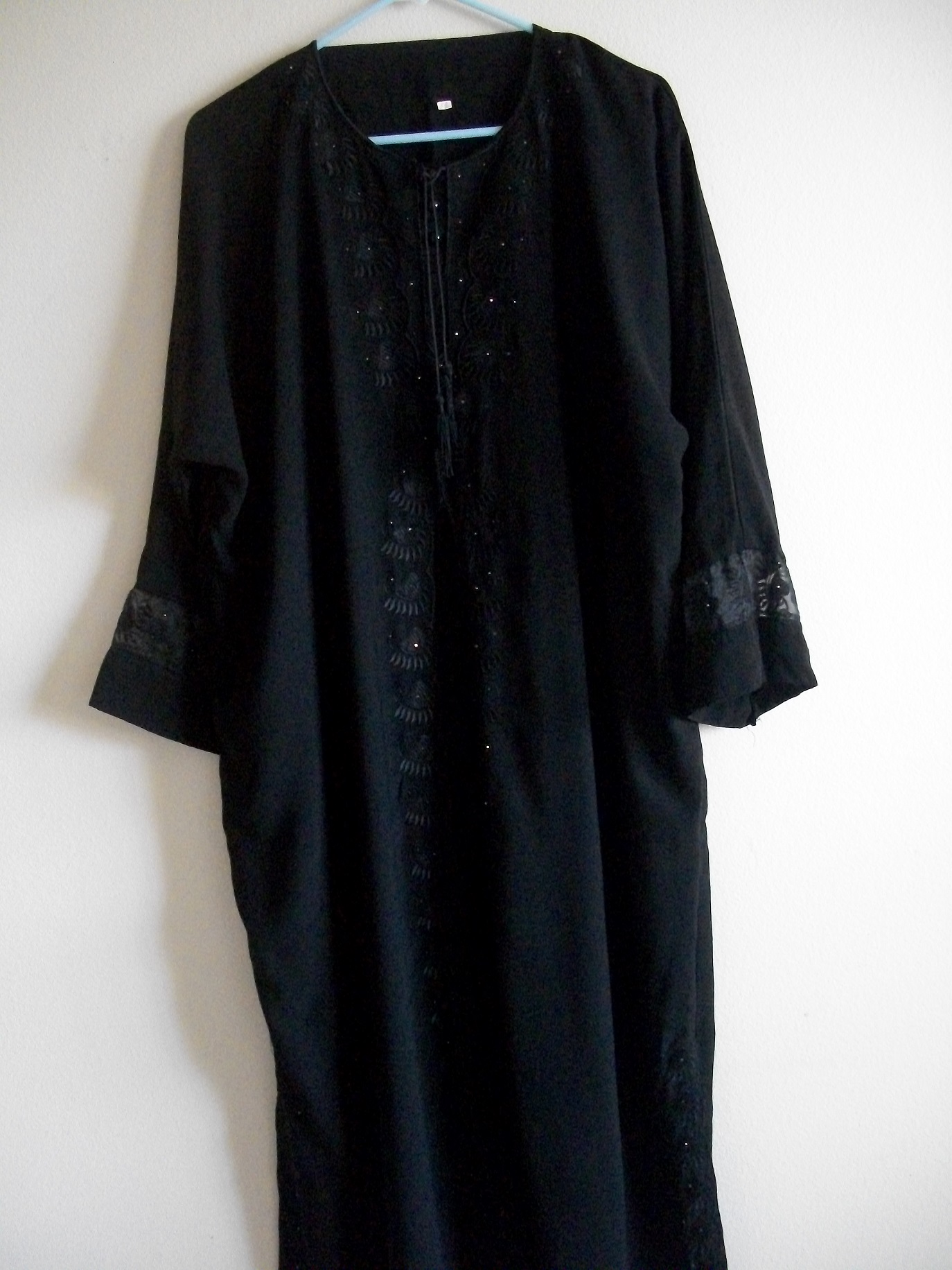 Never worn! I got it for eid last year but never got to wear it because it’s a little too tight for me and I dont know anyone who could fix it for me. It does come with sleeves that are attached inside. -