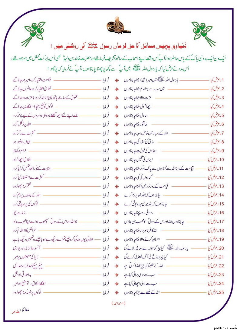 PACCHEES (25) ANSWERS BY MUHAMMAD, S.A.W/P.B.U.H