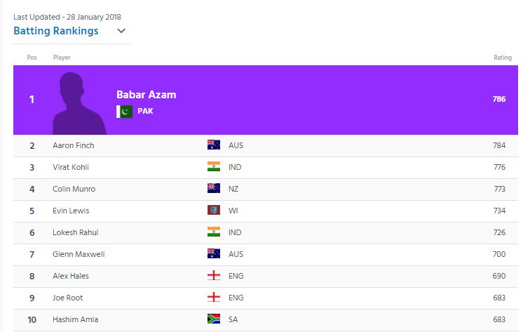 but rankings never tell the full story…is babar really a better player than kohli, finch,root, amla, maxwell in T20s globally on all sort of pitches in all sort of conditions? not so sure.
