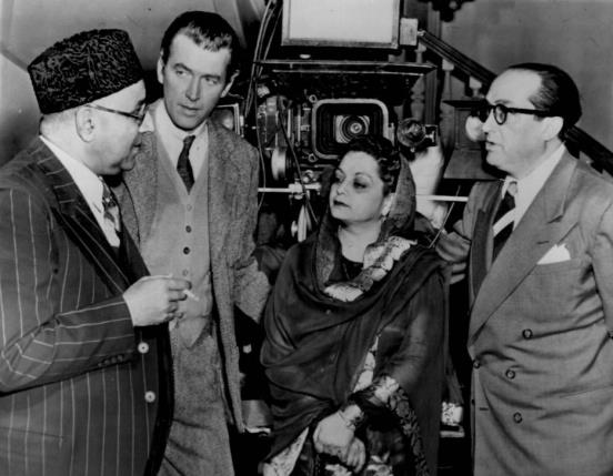 Former Pakistani Prime Minister, Liquat Ali Khan (left), having a chat with famous Hollywood actor and star James Stewart (second from left) in Lahore (1951)