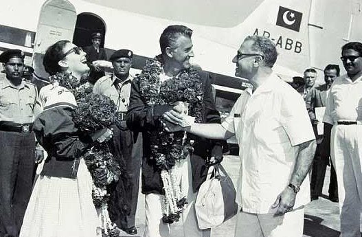 Famous Hollywood stars Ava Gardner and Stewart Granger arrive at Lahore Airport, 1954. The actors arrived in Lahore with a full filming crew to shoot a major portion of the film ‘Bhowani Junction.’