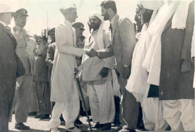 founder of Pakistan, Muhammad Ali Jinnah, shaking hands with future Baloch nationalist leader, Nawab Akbar Bugti, in Quetta, in 1948.