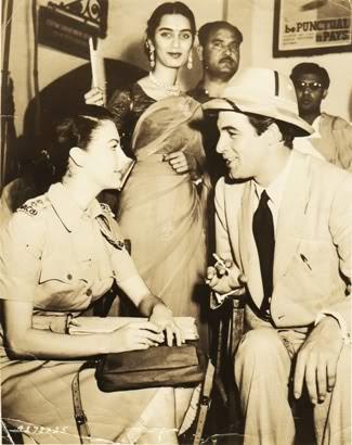 Pakistani fans and artistes gather around the main cast of Bhowani Junction on the film’s sets in Lahore.
