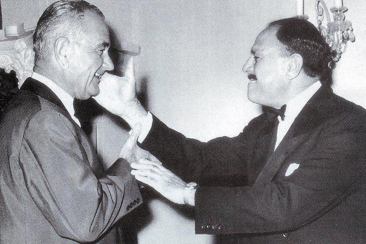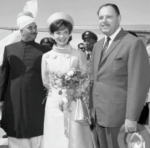Jackie Kennedy in Pakistan with President Mohammad Ayub Khan and the Nawab of Kalabagh, 1962.