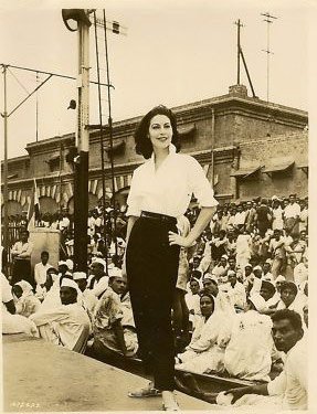 Ava Gardner shooting a scene at the Lahore Railway Station in 1954.
