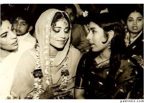 This photo was taken on Valima day of TV artist Zeenat Yasmeen (mother of model Iraj Manzoor). Neelofer Abbasi is next to her. In the right hand corner of the photo once can see (late) Ishrat Hashmi who was also a PTV artist. On the left side one can see face of TV actor Parveen Akhtar (later Parveen Khan).