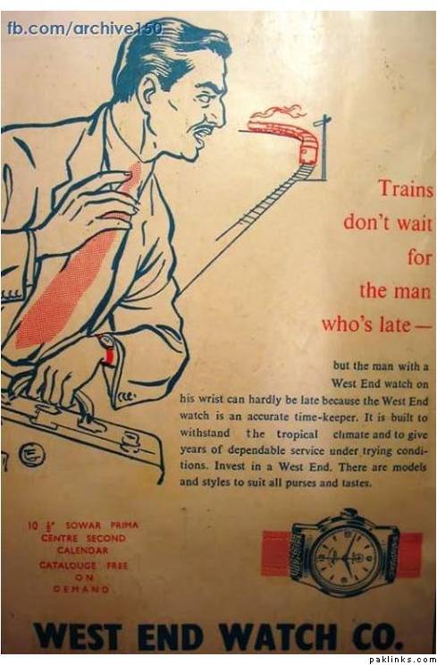 1950s: “Trains don’t wait for the man who’s late” - An advertisement of West End Watch Co.