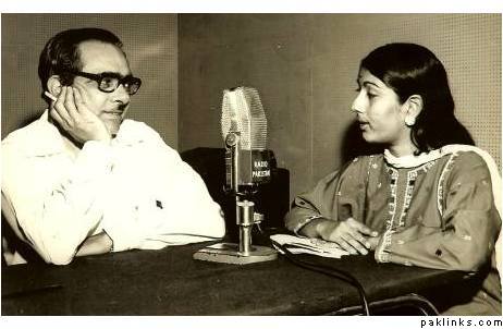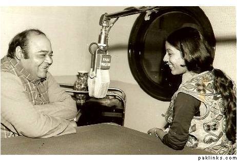 Nana (real name Rafi Khawer) sharing some light moments with Neelofer Abbasi during a radio interview in 1973.