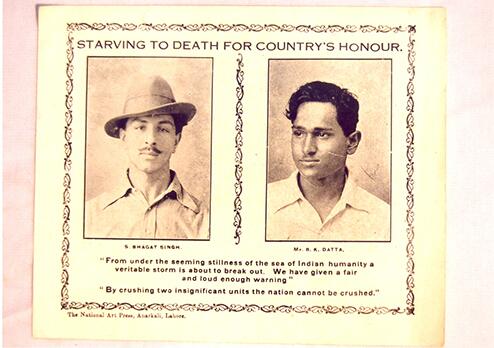 Poster of Hunger Strike by Bhagat Singh,Slogan coined by Bhagat Singh,printed by National Art Press, Anarkali, Lahore