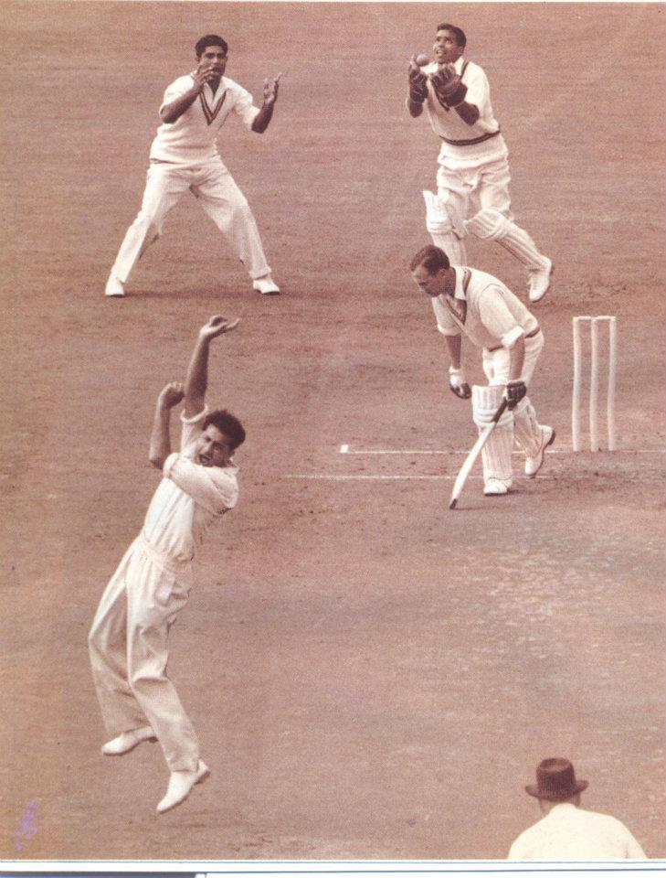 Fazal Mahmood appealing for caught behind, 1954 Oval test match,