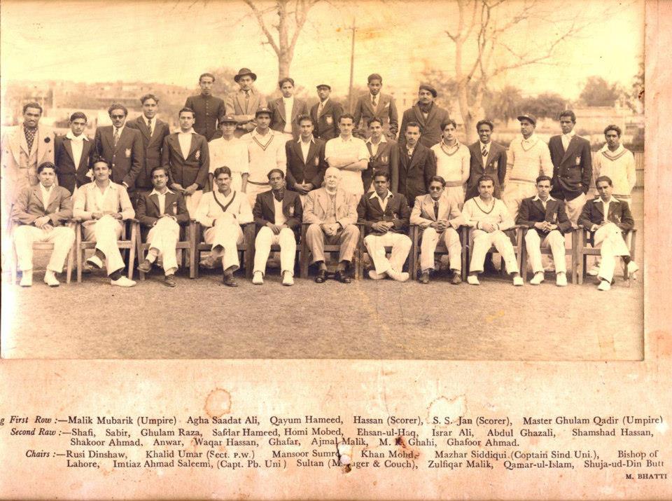 Pakistan Cricket Team with Governor of Lucknow 1952-53. Imtiaz Ahmad (Left to Right 1st row, 2nd one) giving look of Umar Akmal.
