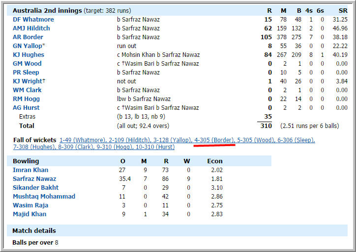 1st Test: Australia v Pakistan at Melbourne, Mar 10-15, 1979 | Cricket Scorecard | ESPN Cricinfo