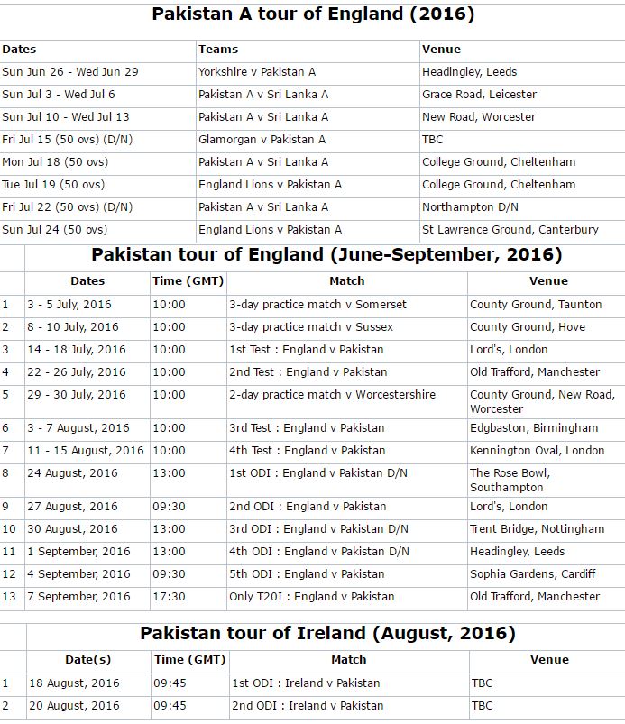 Pakistan in England 2016[RIGHT]June 18, 2016[/RIGHT]Pakistan depart with eye on ending 20-year wait
