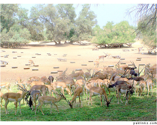 a herd of captive blac buck in lal sohanran nationalpark, bahawalpur
