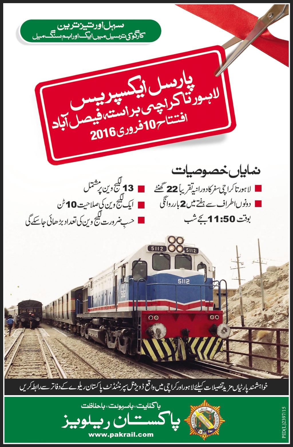 He said the department was hoping to cross the set target of revenue generation in freight sector this year. Saad Rafique said ‘Fast Cargo’ train would be run between Karachi to Rawalpindi. He said that around 85 to 90 locomotives had been allocated for freight trains. He said that 55 locomotives are scheduled to arrive soon from United States and would be attached with freight trains.