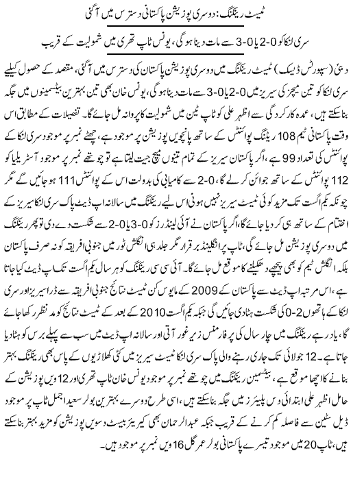 Pakistan Test Ranking . . .