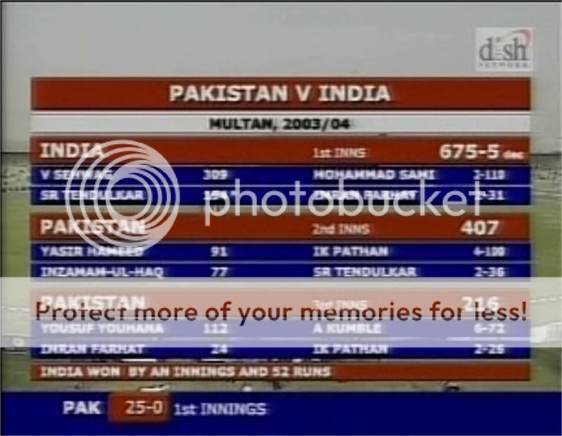 The last match played in Multan was Pak Vs Ind where Sehwag scored a tripple hundred, the score card :