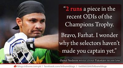 ab waqt aa gaya hai koi aur fav team tournament mein select kernay ka… ppl who know me by my country at my work place are literally laughing their A$$ off as why and why only pakistani batsmen have these issues… uuper kay paanch khilariyoun ko nikaal daen aur seriously bring in some old rugs or new strikers ![]()