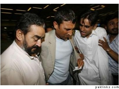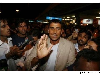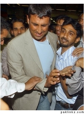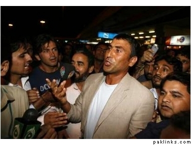 Just one airport security official accompanied him from the arrival lounge, and people gathered around the Pakistan vice captain the moment they saw him heading toward his car. Khan responded angrily to the slogans against him. “Who will make me sit on the donkey?” :gadha: he asked before being hustled into the waiting vehicle by some relatives.