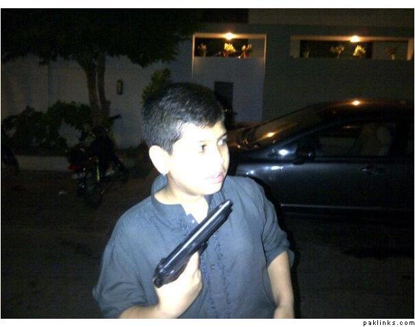 On a serious note, my stomach flip every time I see pictures of 12-13 years old younglings in Pakistan sitting in a driving seat and acting oh-so-cool! And what’s up with her younger son carrying a pistol? Talk about the height of irresponsibility as a parent!