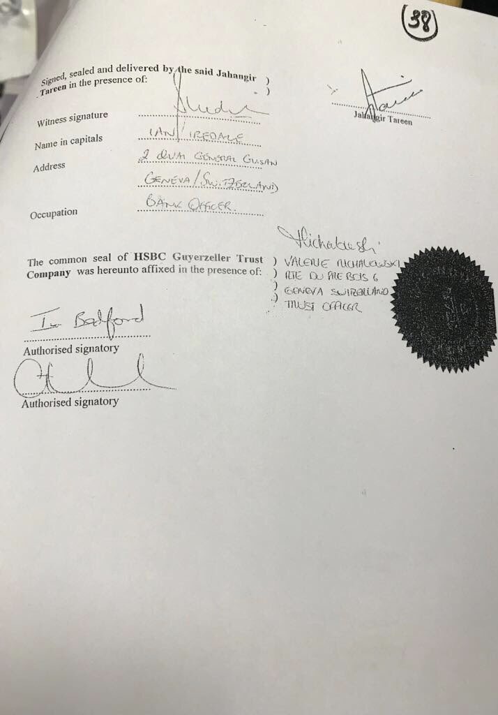 So the London Trust deed of Jehangir Tareen was signed in Switzerland and has Swiss bankers as witnesses. Does that mean he has Swiss bank accounts? Has he declared those accounts, if he does hold them? Why signed in Switzerland?