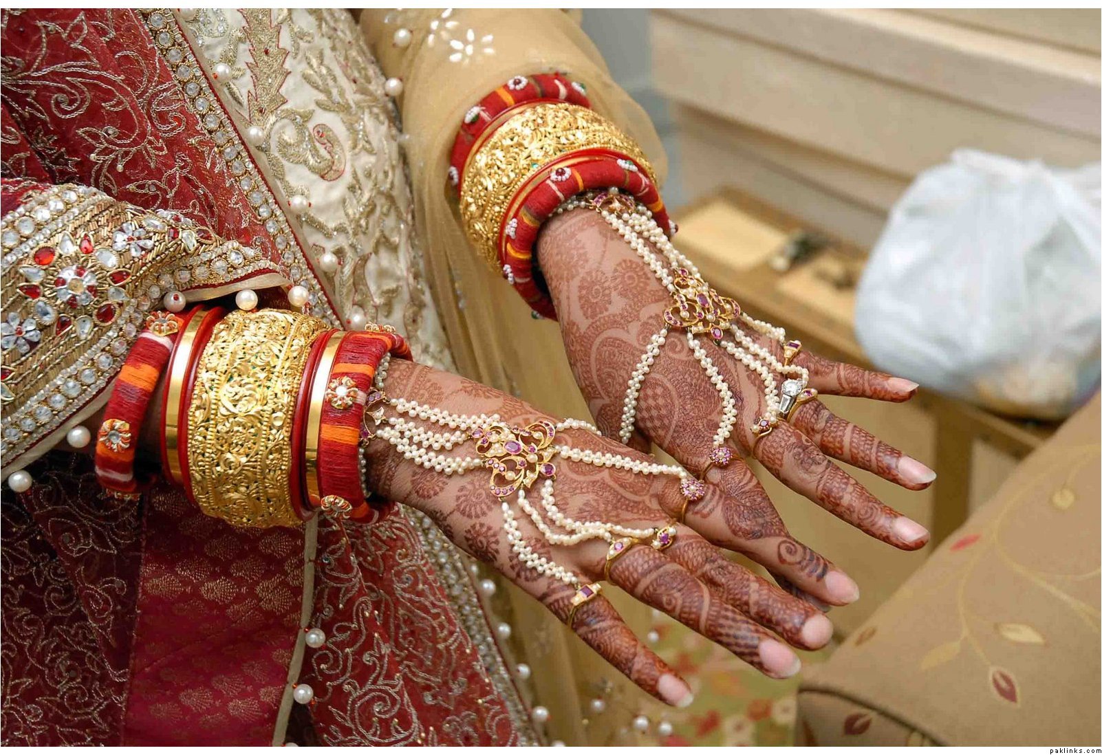 u need to go with what suits u and the overall look u are trying to achieve, I have seen alot of brides who wear everything they have to 'show' this is what they have, which ruins the overall look. u want to be the centre of attention for all the right reasons and ensure ur pics come out great! I went to a wedding where the girl had a ring on every sinlge finger with the palanjala, then gold bangles on one hand with arm band, then bangles on the other etc etc it was soooooooooo busy looking and ruined her gorgeous lengha. if ur lengha is a 'wow' piece ur jewellery needs to compliment it and vice verca..............xx