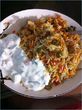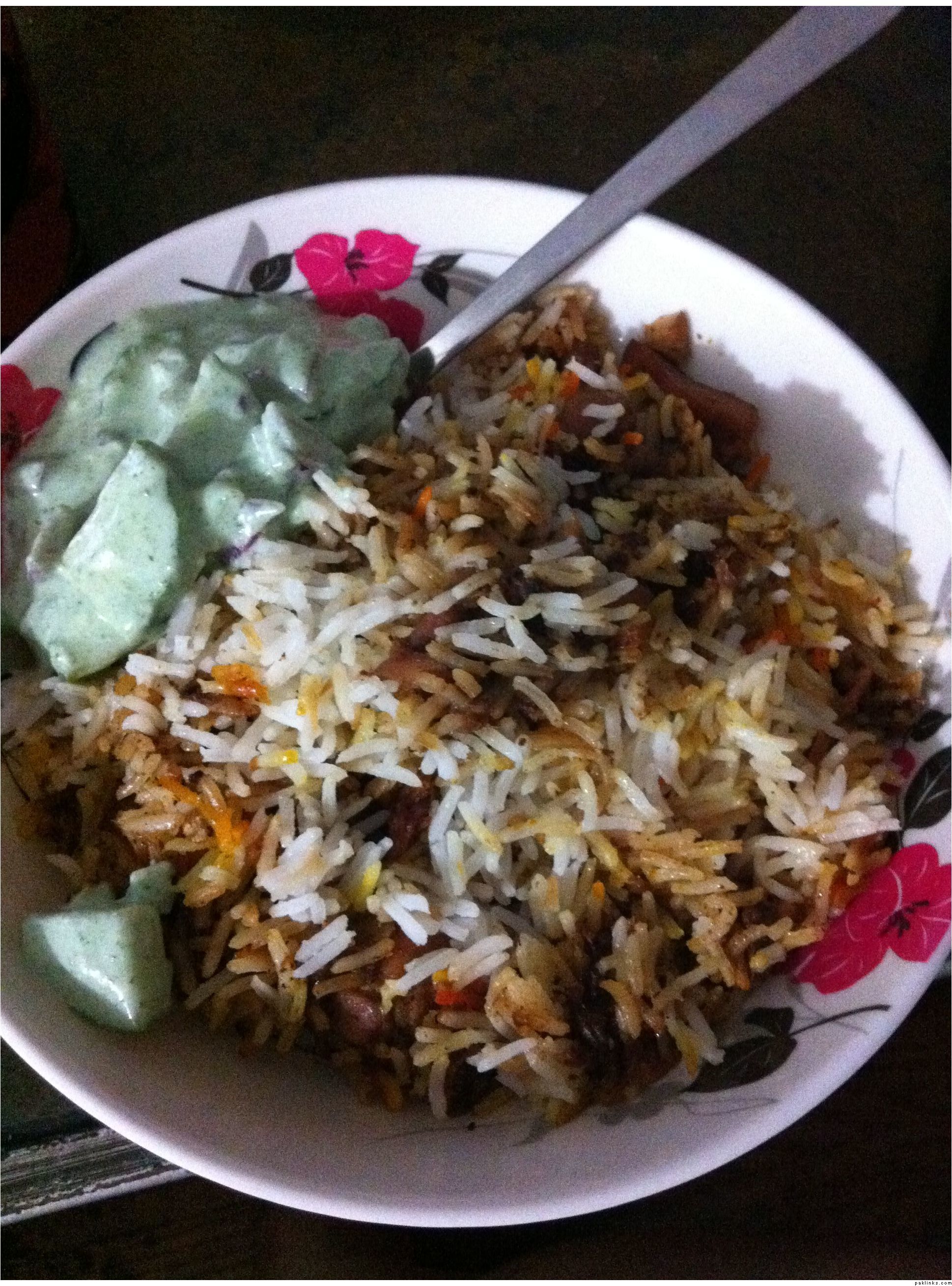 so what I do is–cook the chicken/veggies (have never used any other kind of meat yet)…I boil a bunch of water with two bay leaves and a black elaichi and pinch of salt… add rice to it…let it boil uncovered for several minutes, when it’s mostly done, I drain the rice, remove the elaichi and bay leaves, and then do the rice-masala layers. Cover it with paper towels, then the lid, and leave it on the lowest heat possible for 20-25 minutes