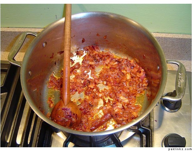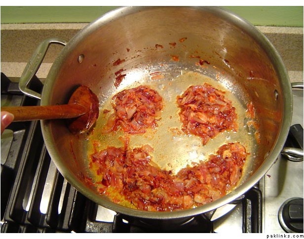 First you fry the onions and tomatoes…