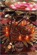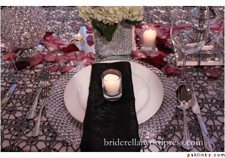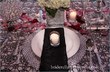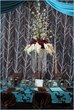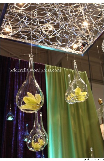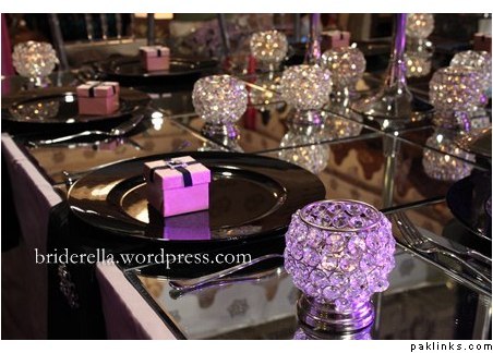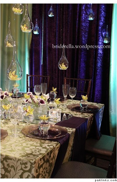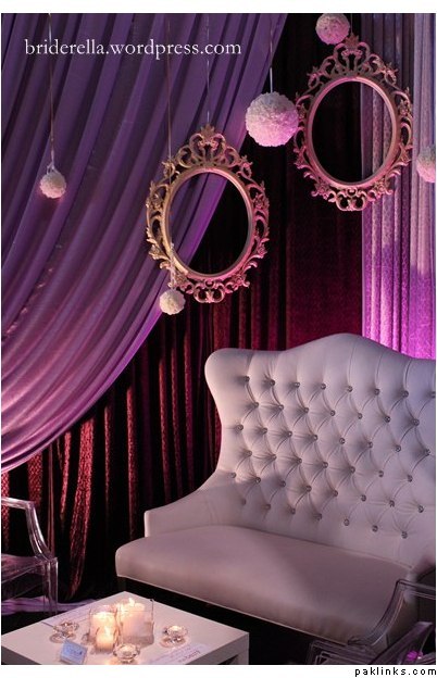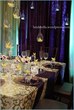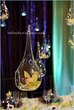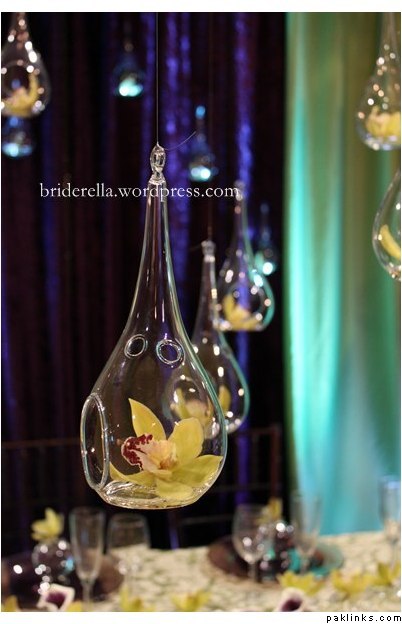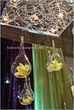 Beautiful hanging centerpieces accompanied by mirror top tables reflecting what’s up above.