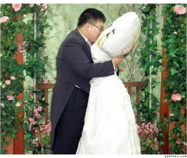 True love can take many forms. In this case, it has taken the form of a Korean man falling in love with, and eventually marrying, a large pillow with a picture of a woman on it.