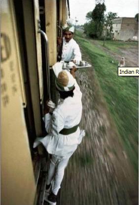 **in old days when train coaches were NOT interconnected, the servers used to move food to the front and rear of the train this way…the dining car/pantry car/kitchen used to be in the centre of the train. isn’t it amazing how they passed on trays of tea from one coach to the other. it was so much labour intensive ![]()