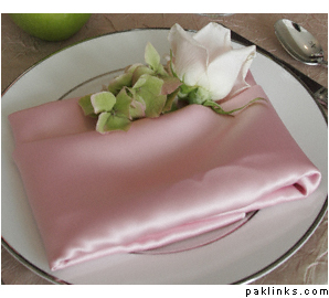 it will be folded in the longer style with an ivry linen and the flowers will be in my colors (the magentas, fuschias, pinks/reds)