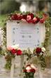 well done on all your planning! and yes, i would keep the linens ivory... i would go with a tone on tone ivory damask to keep the look opulent but not OTT. i think it will also show the red and magenta flowers better.